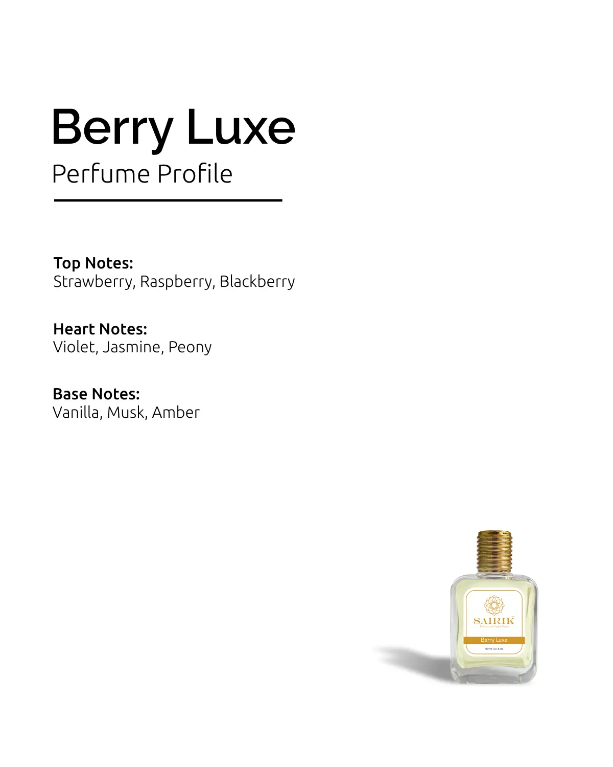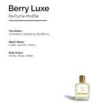 Product Overview: Inspired By Burberry For Her, Berry Luxe Is A Vibrant And Playful Fruity-gourmand Fragrance. It Opens With Juicy Strawberry And Raspberry, Unfolds Into A Heart Of Violet And Jasmine, And Rests On A Creamy Base Of Vanilla And Musk.
