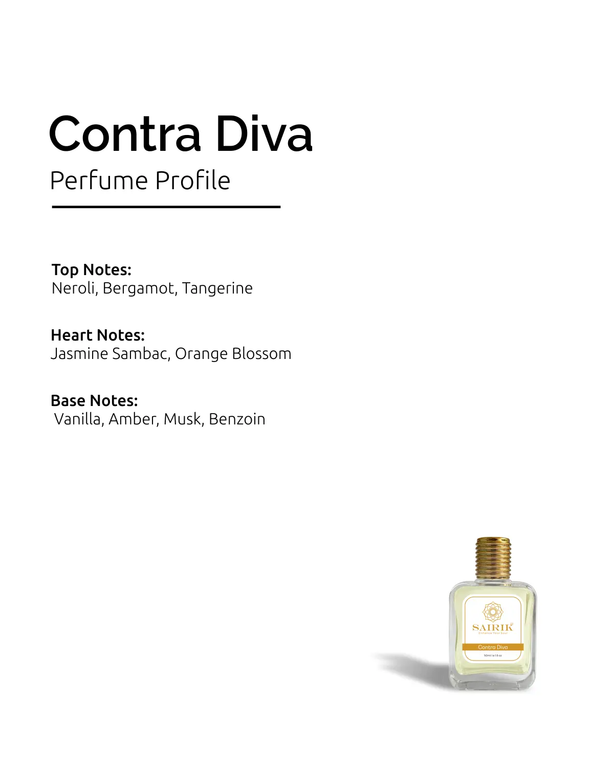 Product Overview: Inspired By Paradox, Contra Diva Is A Modern Feminine Blend Of Neroli And Tangerine, Layered With Jasmine And Orange Blossom, And Grounded In A Creamy Base Of Vanilla And Amber.