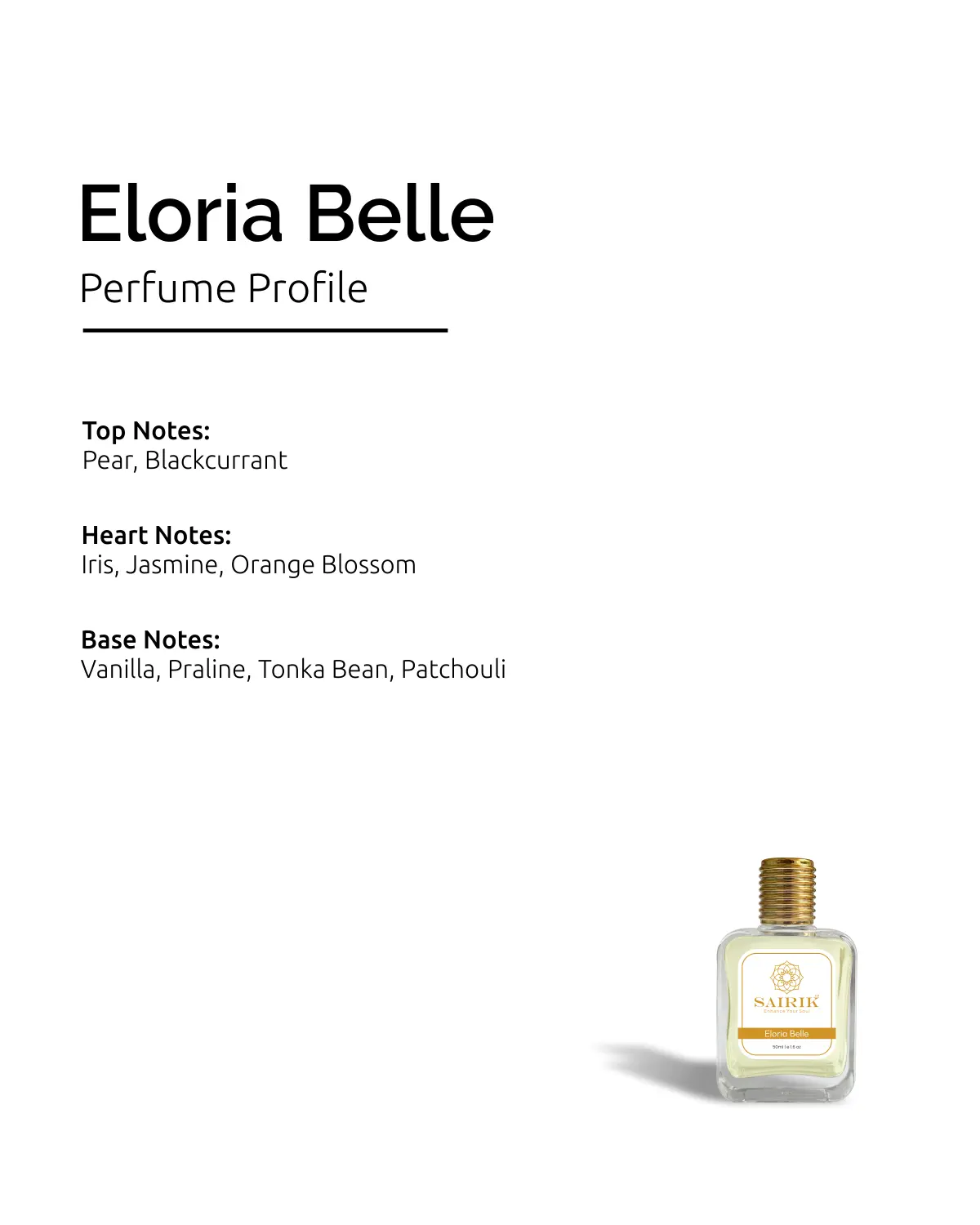 Product Overview: Inspired By La Vie Est Belle, Eloria Belle Opens With Juicy Pear And Rich Blackcurrant, Unfolds Into A Delicate Heart Of Iris, Jasmine, And Orange Blossom, And Settles Into A Sweet, Comforting Base Of Vanilla, Praline, And Patchouli.