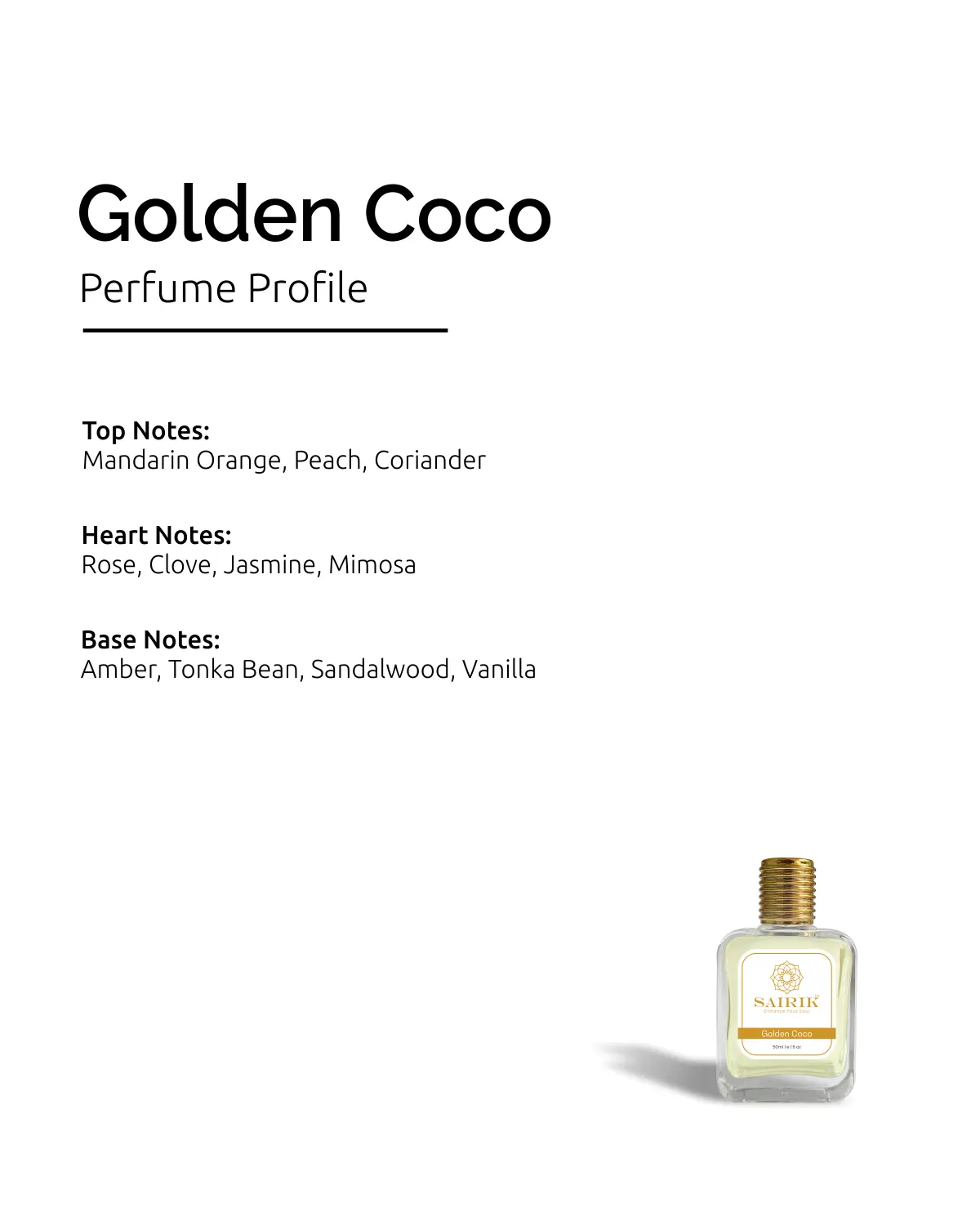 Product Overview: Inspired By Chanel Coco, Golden Coco Is A Rich, Oriental-spicy Fragrance That Exudes Timeless Elegance. It Opens With Vibrant Mandarin And Coriander, Deepens Into A Luxurious Heart Of Rose, Clove, And Jasmine, And Settles Into A Warm Base Of Amber, Sandalwood, And Tonka Bean.