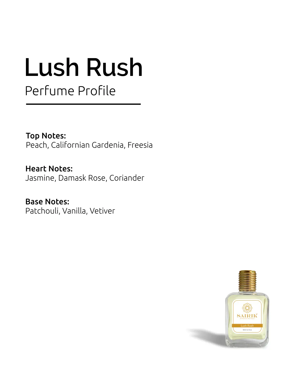 Product Overview: Inspired By Gucci Rush, Lush Rush Is An Electrifying Chypre-floral Fragrance With Instant Allure. It Opens With Juicy Peach And Freesia, Flows Into A Sultry Heart Of Jasmine And Gardenia, And Finishes With A Deep Base Of Patchouli And Vanilla.