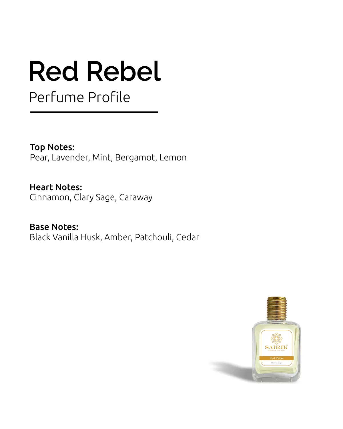 - Base: Black Vanilla Husk, Amber, Patchouli, Cedar