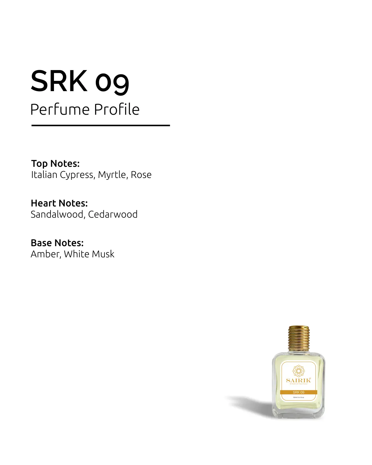 Product Overview: Inspired By Tam Dao, Srk 09 Is A Serene, Woody Fragrance That Opens With Soft Cypress And Myrtle, Flows Into A Calming Heart Of Sandalwood And Cedar, And Settles Into A Creamy Base Of Amber And Musk.